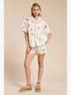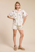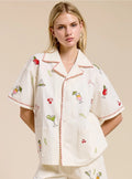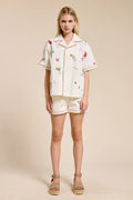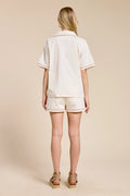 Flat White Signature Embroidery Button Down Shirt Top with Special Piping detail