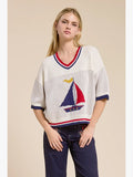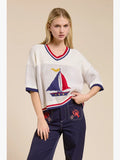 Short-sleeve Nautical V-neck Jacquard Sweater